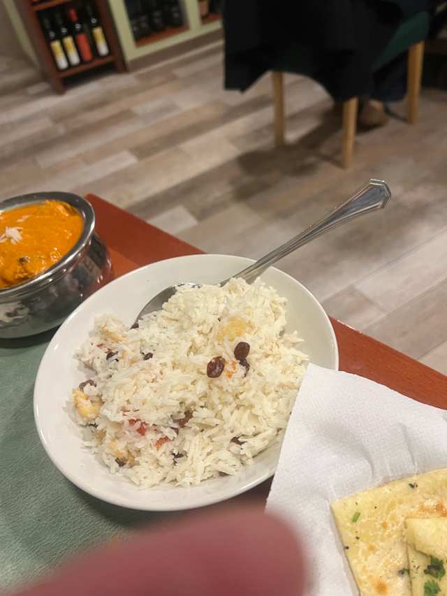 - (Arroz aromático preparado con una mezcla especial de especias y frutos secos.)