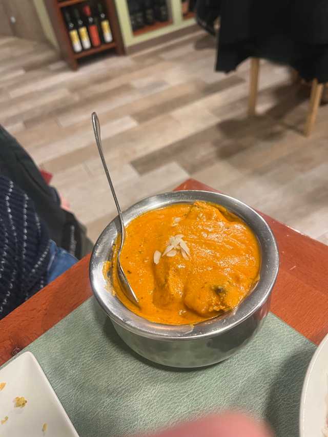 - (Anacardos cocidos en una salsa espesa y especiada de tomate y crema.)