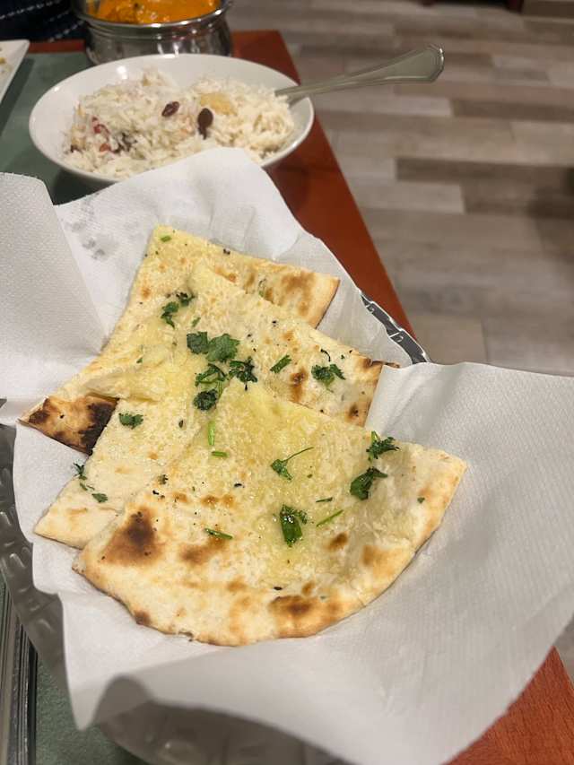 - (Pan relleno de paneer (queso fresco) y especias, cocido en tandoor.)