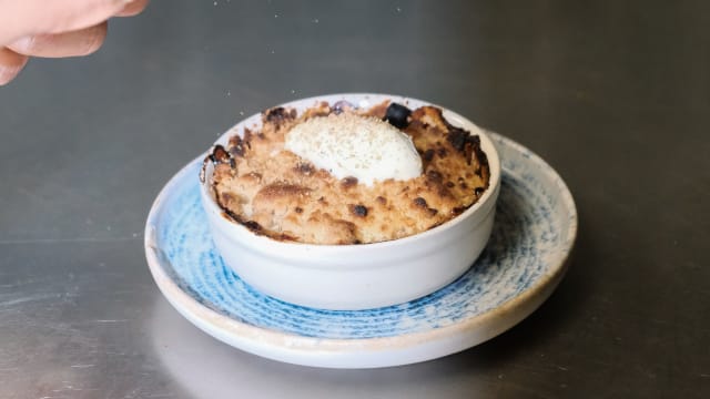 Brioche bread, white ham, emmental cheese, onion fondue, truffle oil from maison plantin