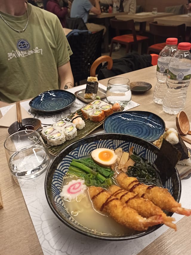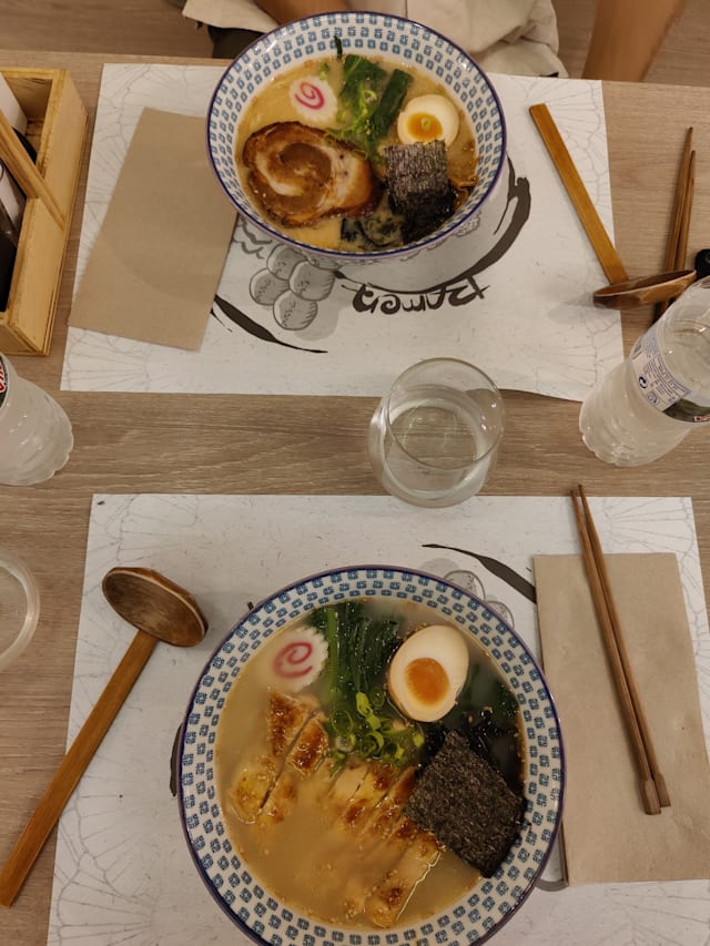 9.5/10Great choices for ramen bowls... Spicy beef, chicken and vegetables were great... The gyōza dumplings to start were delicious! Served steaming hot, great value at 39€, including 3 drinks and water for the two of us.