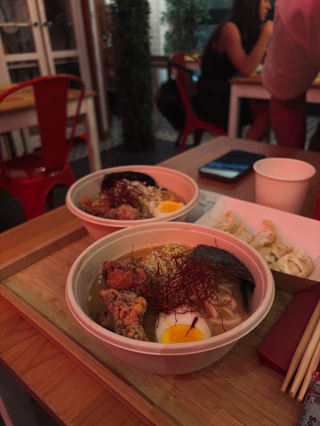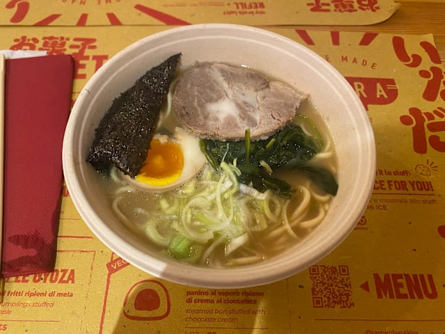 5/10Did not expect it to be like a fast-food chain where you need to order at the counter and pay then and there then they serve the ramen in a disposable container, but that's an error on my part and that's not even the reason why my rating is low. It's mostly due to the fact that prior to this I dined at the other Ramen Akira in Rome and the difference is abysmal which is mind-boggling since they're of the same brand. If it was just a tad inferior to the other location, it would have been fine and acceptable, but the ingredients were of a much lower quality and the portion is much smaller (my boyfriend didn't even get a soft boiled egg in his despite the menu saying so). If you want a "whatever-goes" ramen in a disposable bowl then it's not a terrible place, but if you want the closest thing to an authentic one then go to the Ostiense location. Btw they added the plastic bowl and cutlery cost to our bill.