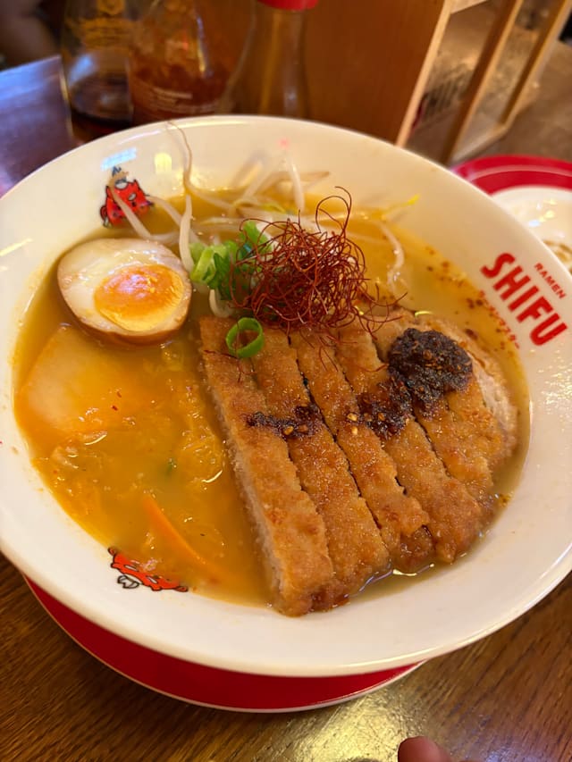 9.5/10definitely non-authentic ramen noodles and soup, but it was still enjoyable in its own way. one of the older staff was also VERY rude (rolled his eyes at us, etc) but the other staffs were much nicer so they made up for that. owner please look into the staff’s attitude.