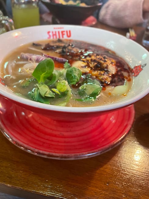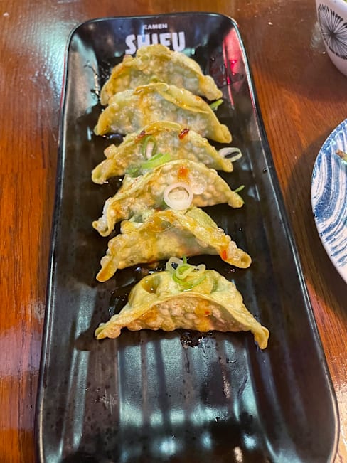 6.5/10The starters were served at the same time as the Ramen although the waiter had said they would be served before. So we had no time to enjoy the starters which were hotter than the ramen. The miso Ramen was a bit heavy for my taste, I prefer a lighter broth. The ramen dish wasn't warm enough. The service was friendly, strangely even more so after we tipped.