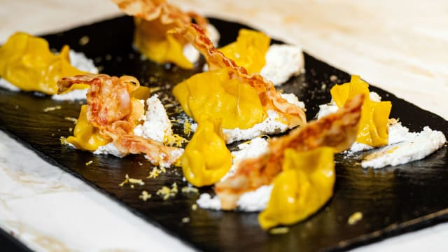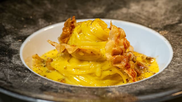 Pasta mancini, uova pastorizzate, guanciale di amatrice, pecorino romano d.o.p., pepe nero