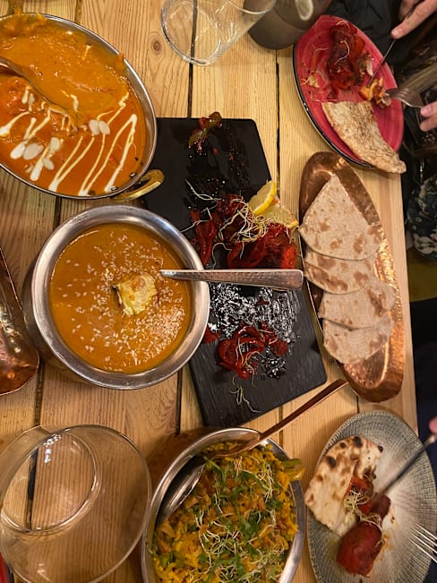 6/10The restaurant is really nice, with lot of spaces, however, if the place is full, it can be congested, with tables very close to each other and thus loud and not cozy at all. Due to this reason we had to switch between 2-3 tables before feeling comfortable after a long tiring day of sightseeing. However, this seems to have irked the staff and while they were not rude per se, but we received bad vibes and not so happy faces, which was definitely not called for, especially in a fine dine restaurant serving indian food. the food was okay, good for european standards, but if you are an Indian expecting good Indian taste, you might not be very happy with the style of the Bangladeshi chef and staff. Asking for extra spicy basically means putting some red chilly powder. The Naan were bland and dry and when we asked our crispy tandoori rotis to be changed to normal one, they were again not happy and brought us rather super thick rotis later. We still thank the staff for giving us the promised discount from the Fork, even though we did not meet the not specified rule of 4 PRINCIPAL dishes to be necessarily ordered for availing the discount, but still, it was not a great experience overall, especially with the pricing. The ambience is really nice though, but thats probably due to the good taste of the Spanish owner of the restaurant!