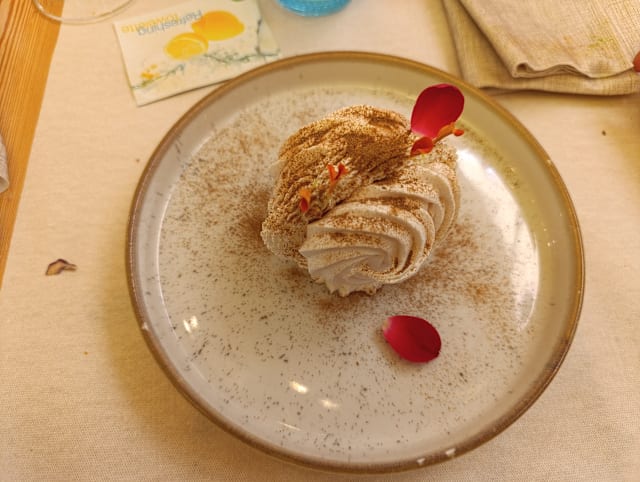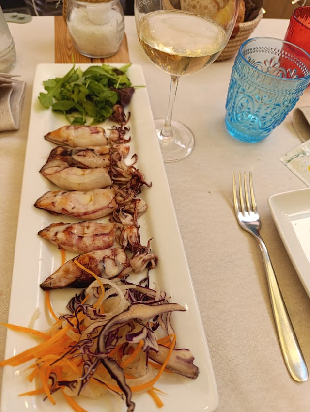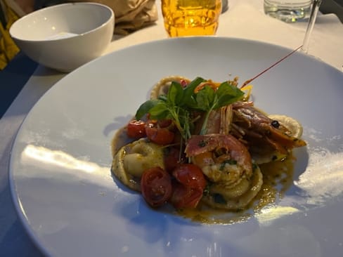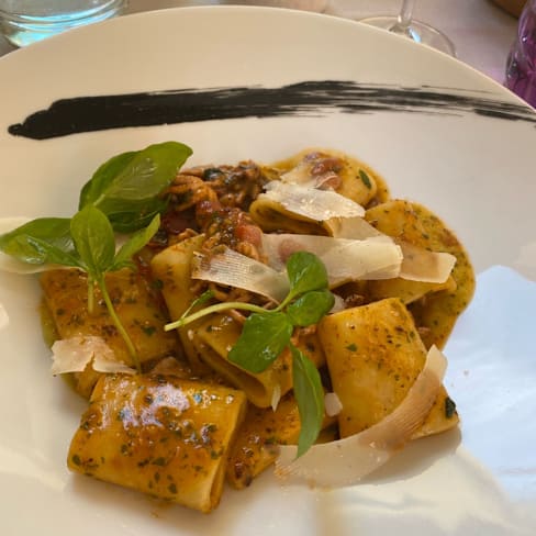 10/10Some of the best pastas we’ve had lately: the oansotti di zucca (pumpkin ravioli) and paccheri alla crema di fave and moscardini (short pasta with faca bean cream and baby octopus) we’re out of this world. Excellent price quality; charming terrace in the center town. Highly recommended!