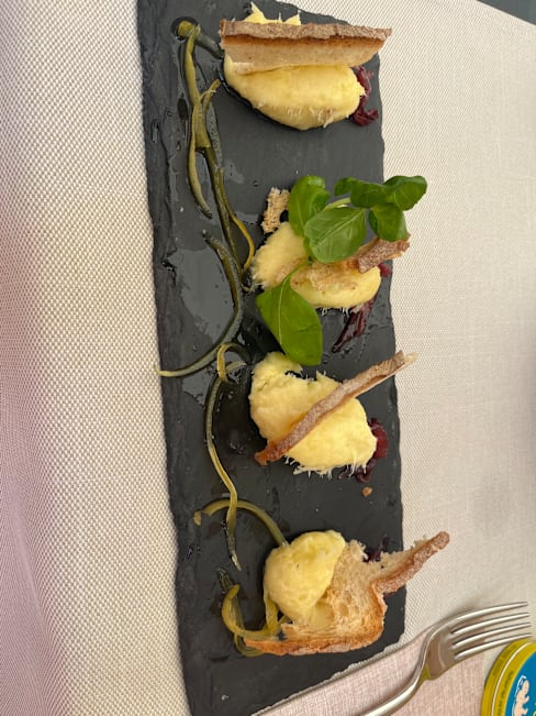 10/10I'd found this restaurant via a review on Trip Advisor. Booked a few weeks in advance & even though it was a Wednesday night every table was full by 8pm. We had a first course of pasta (seafood & a Preston one) followed by second course of steak & fish. The fish was served in a jar. We spent €105 on 2 courses plus a bottle of wine. With bread & a local speciality which involved anchovies & sparkling water which were then fried I think thrown in. Was a lovely meal & would certainly recommend. Staff were happy to answer our questions & spoke to each customer with exactly the same enthusiasm