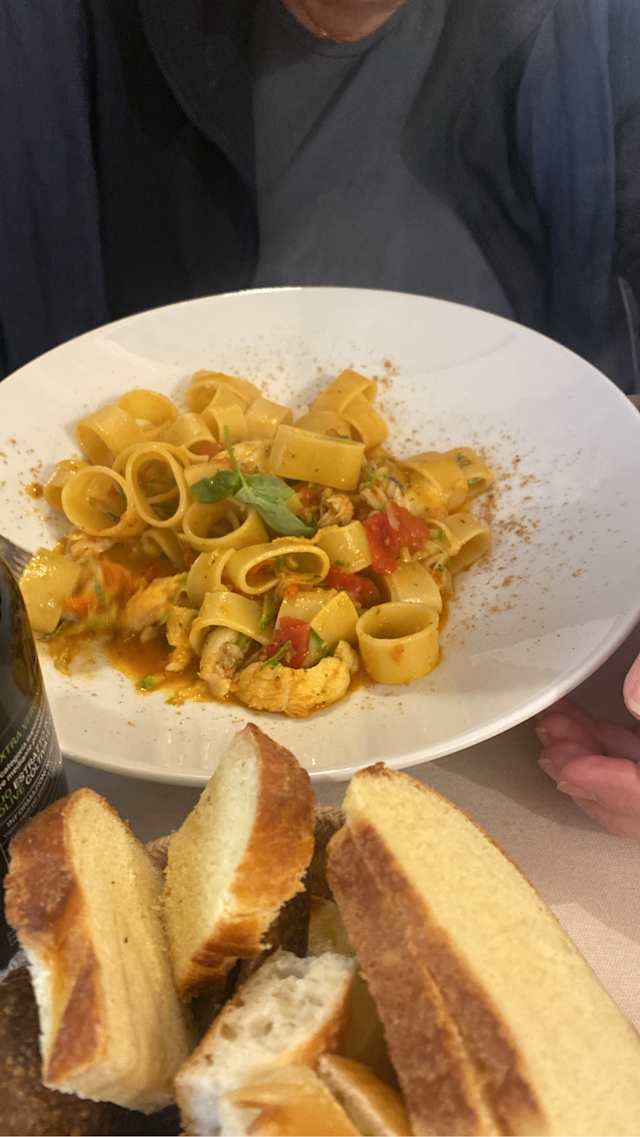- Pacchero fresco mantecato con polipetti* novelli e pecorino in scaglie