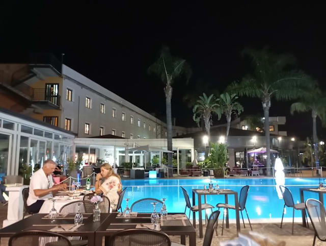 10/10Nice good restaurant located in hotel Atlantis Palace hotel. The dining area is situated romantic at the pool area nicely luminated. The staff is incredibly friendly, especially for our dog Molly. If we visit Sicily again, we surely dine at Rapanui.