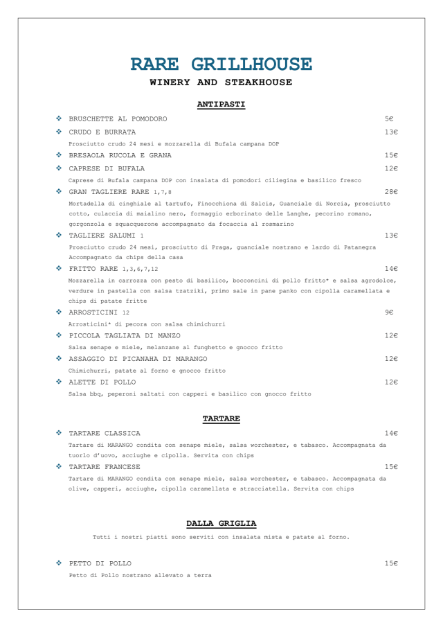 Rare GrillHouse Segrate is identified as offering meat cuisine cuisine.