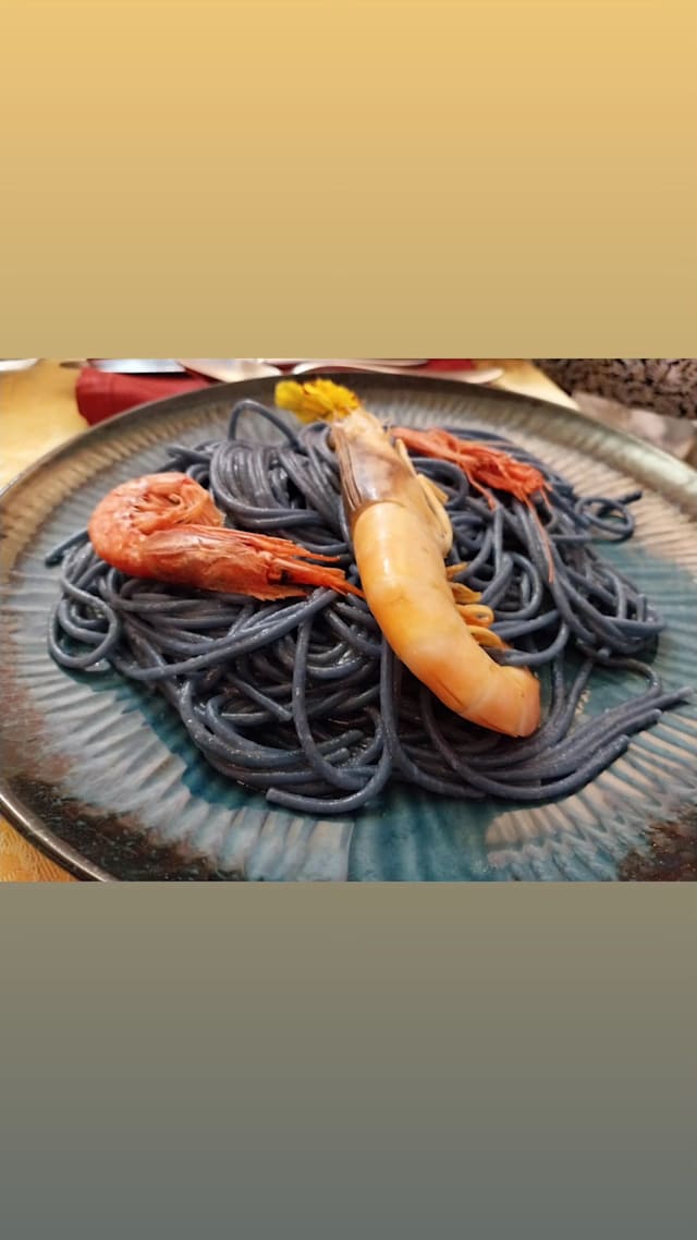 Spaghetti alla blu spirulina, gambero rosso, uova di lompo