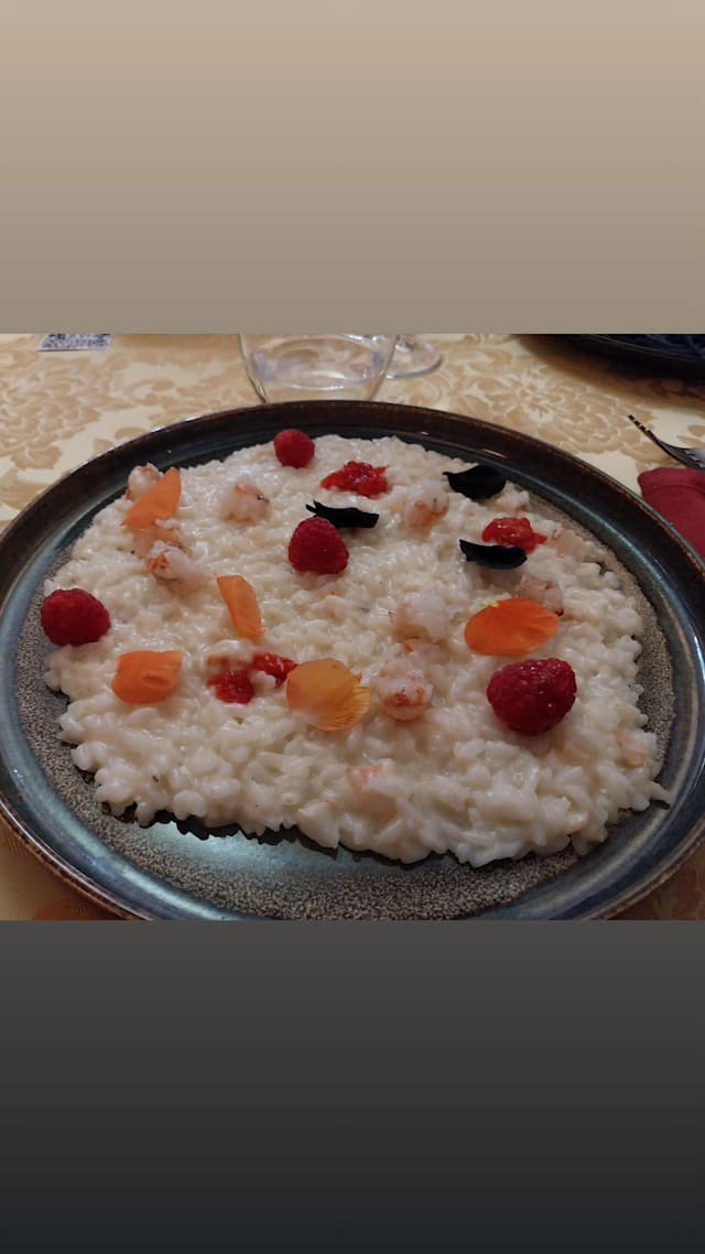Code di gamberoni polenta, lardo di colonnata su fonduta di castelmagno