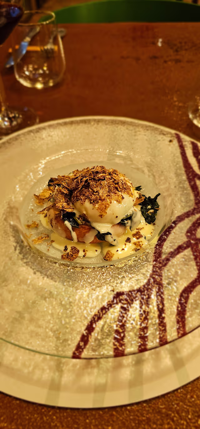 - pan brioches, verdura a foglia, fonduta di pecorino al fieno e tartufo