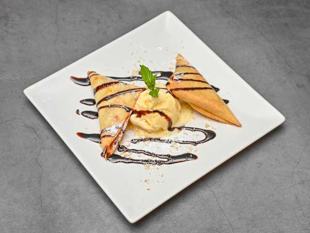 - Deliciosas empanadas de queso rellenas de especias indias, cocinadas con salsa cremosa de anacardos