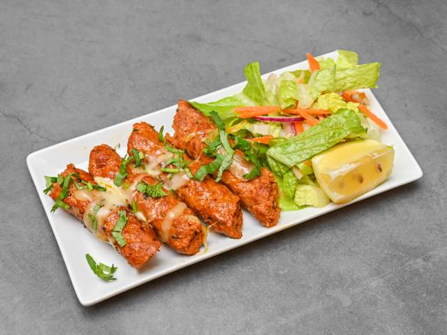 - Brocheta de cordero suavemente especiada y asada al tandoor. Servido con salsa especial