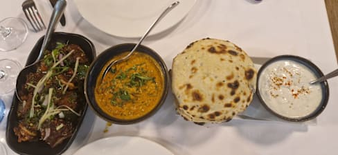 10/10Our first time having Indian food and it was amazing. Every dish was rich and well balanced and we felt we were having a journey through our mouths.