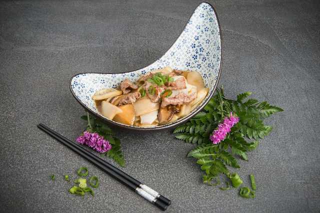 - Manzo, carote, funghi, paksoi, uovo, toufu