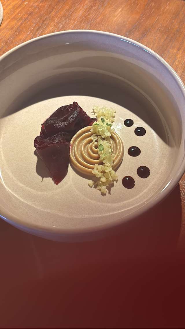 - Guancia di manzo fondente al vino rosso con spuma di polenta concia