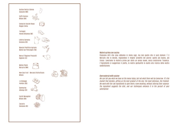 Possiamo dirti cosa abbiamo in carta oggi. Domani? Boh…. Elaboriamo i nostri piatti a partire da ciò che il Mercato offre quotidianamente di più fresco, più buono, più particolare e più interessante. Ci adattiamo all’incostanza della natura, scegliendo solo quei prodotti che oggi ci convincono. A...