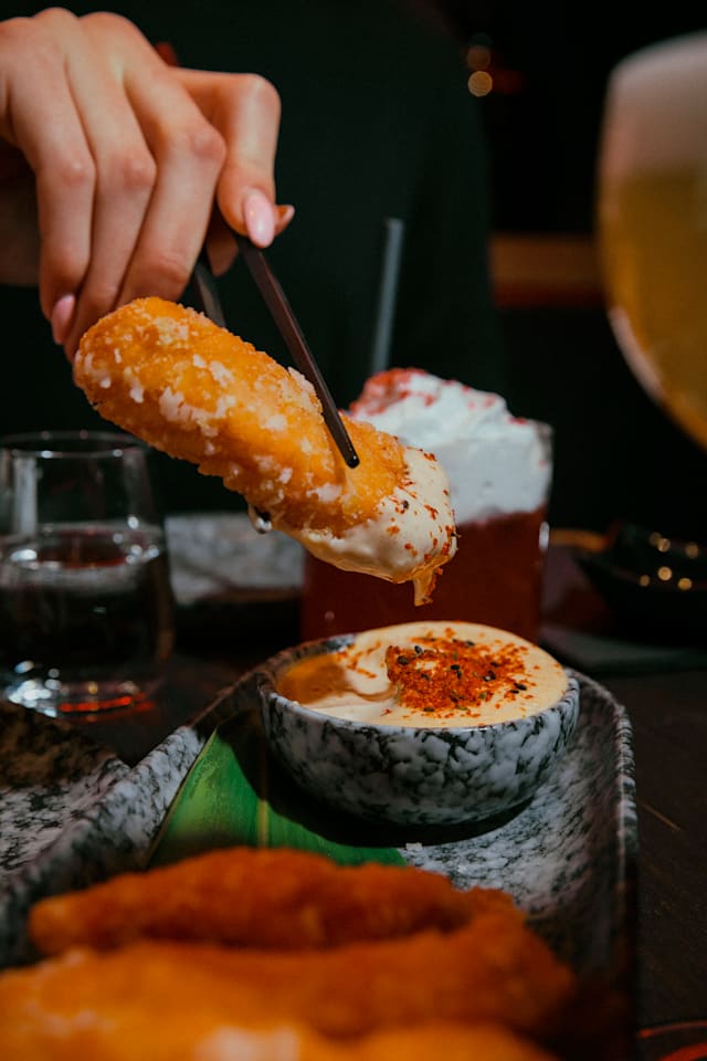 - Friterade räk-nigiris, BBQ, black bean sauce, raws chilisås