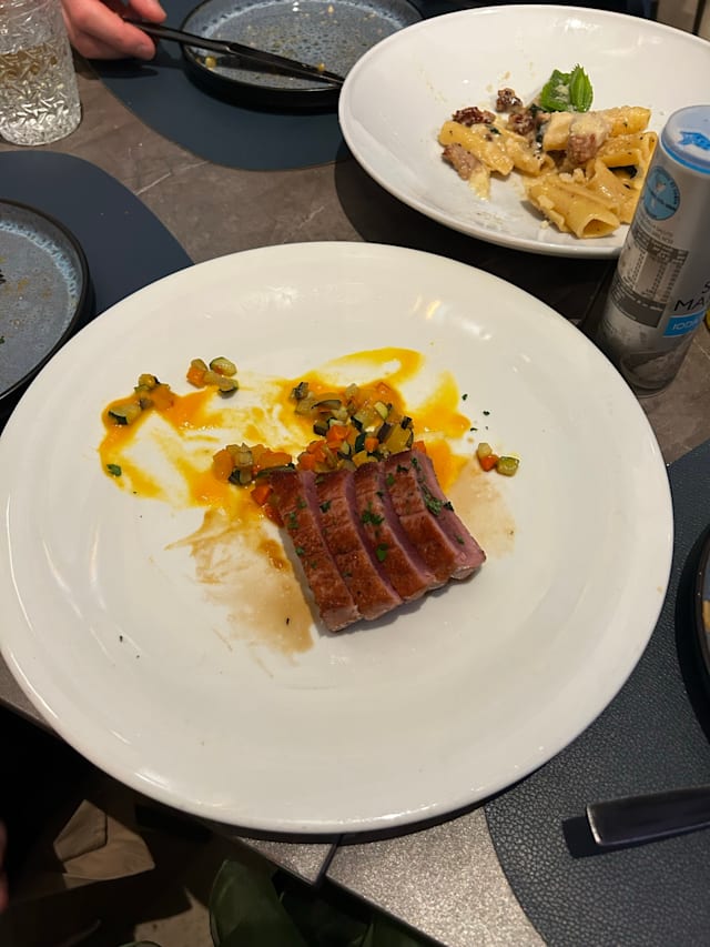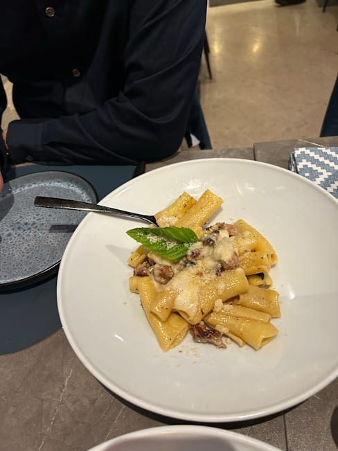 7/10For the appetiser, we had an Roasted Octopus Tentacle and Fried courgette flowers with ricotta and salami. These two were amazing 10/10 highly recommend. For main, we ordered T bone steak with homemade potato chips, the chips were great, but the T bone steak has too much tendon, really hard to chew. For pasta, Calamarata with clams and friarielli, it was average as I can only taste the spiciness of the chilly. Overall, the expectation was at the top after enjoying the appetisers. However it was a bit disappointing afterwards. The Price-quaily ratio would be so nice if the main and pasta were not underwhelming. We really enjoyed the appetisers.