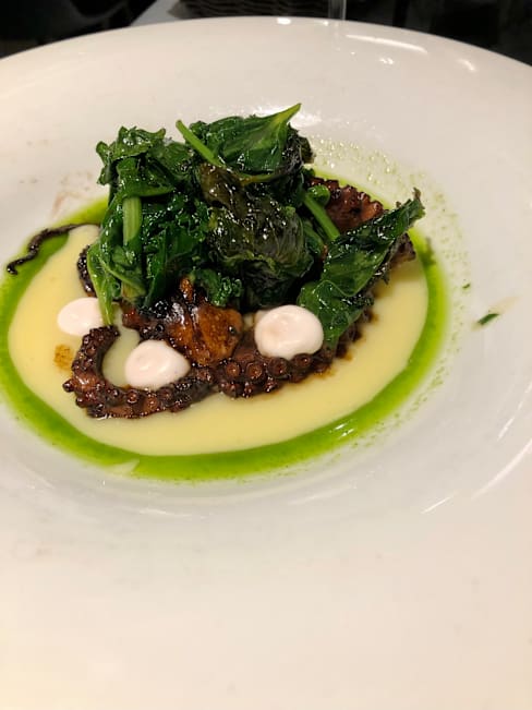 6.5/10Cute restaurant with friendly server. They were out of ice so no cocktails. Bigger issue was that the apps were not great. Octopus came in a gelatinous sauce and squash blossoms were overly full of cheese. Entrees were better (and generous servings).