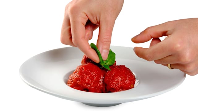 Pomodoro san marzano dop, spicchio di aglio rosso di sulmona (presidio slow food), origano e olio EVO