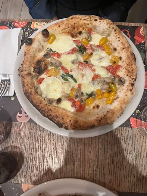 7/10The pizza was really nice but one was a little burned , but the dough and sauce 9/10 wait time was ok, ambiance ok, we got the fork discount “sconto” on the pizzas but then were marked as no show and fork team fixed , overall it’s a good pizzeria away from the crowded places