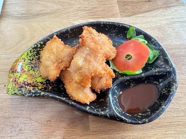 - Omelette de crevettes panées sauce soja sur un bol de riz