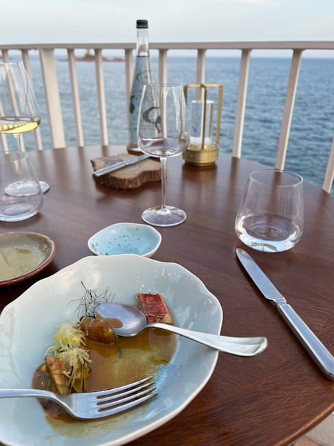 7.5/10Location was amazing and service was fab. Cheese plate was exceptional and wine pairing was excellent. My friend and I found the food a little one dimensional and with a lot of similar flavours throughout the meal rather than individual courses really standing out. We did the journey round the med menu but that wasn’t really explained in the food or stood out, it was often reliant on that sorrel heavy sauces rather than letting produce and fresh flavours shine.