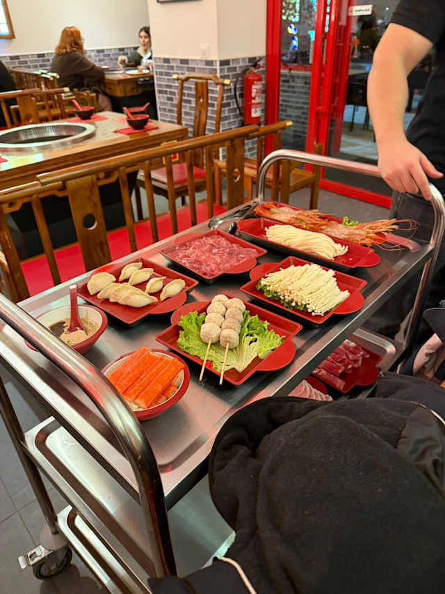 - Olla de 2 sabores, 1 Ternera Red Fenix, 1 Lonchas de Angus, 1 Lonchas de cerdo ibérico, 1 Rollos de cordero, 1 Brochetas de albóndigas, 1 Palitos de cangrejo, 1 Gambones, 1 Enoki, 2 Ramen, 1 Udón, 2 Gyozas 8u
