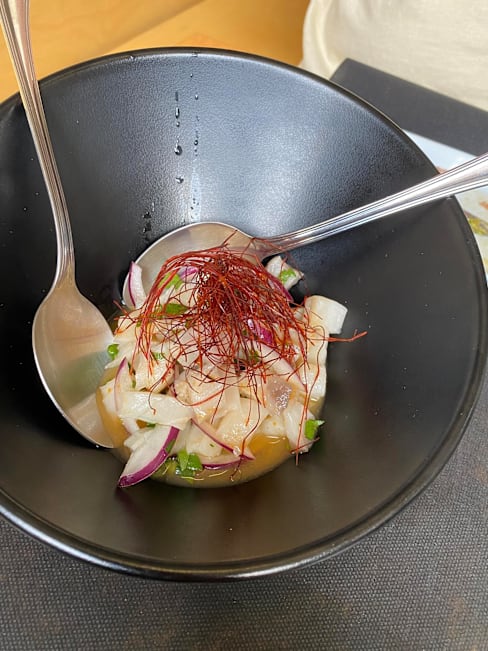 9.5/10Yet another visit to this restaurant- love the quirkiness of this - sharing plates in the order they are cooked - not necessarily starters & then mains! Not sure exactly what nationality they serve - a combination of Spanish, Japanese, South American , Asian - but we really like it. My only criticism would be that the bench seating is very hard and uncomfortable… but the food makes up for it!
