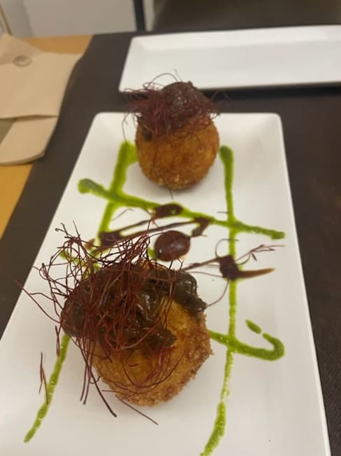 8/10We followed a local recommendation for tapas and were not disappointed. The place was difficult to find, and it doesn’t open before 8:30 PM. Despite the restaurant’s simple setting, the food was absolutely delightful, and we indulged in a feast accompanied by the finest wine. A true hidden gem, it's off the beaten tourist track and not overcrowded, making it all the more enjoyable—an experience I highly recommend. To top it off, we were served a "Dark Misteln" for the twisted soul at the end… right up my alley 👻.