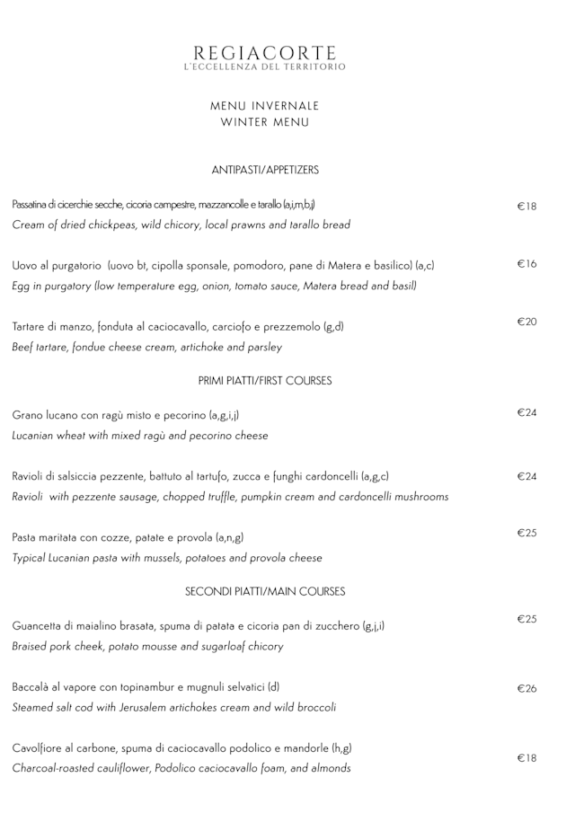 3/10We have eaten at Regia Corte twice before when in Matera. This time was a totally different experience than before. The menu was very limited, especially the vegetarian tasting menu. The food was bland and very expensive. We had much better, tastier and larger meals in Matera for a third of the price. We will sadly not be returning.