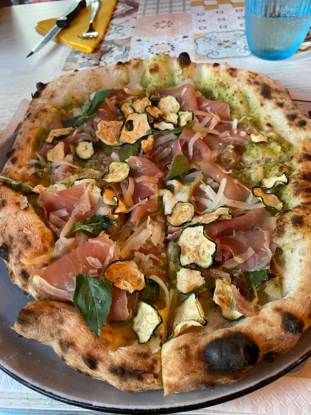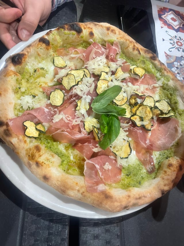9/10Pizza is really good, and we loved to be seated outside. The street is quite and not many cars are passing by. Really recommend