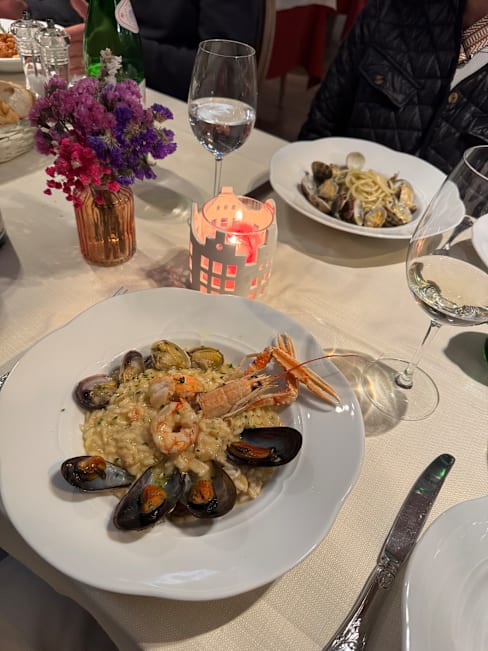 10/10The staff made us feel immediately welcomed at our first dinner in Venice. Every dish was beautiful in presentation but the taste-- wonderful! We had the house bruschetta, crab-stuffed zucchini flowers, the salame misti and burrata to start, followed by spaghetti with bolognese sauce, spaghetti al vongolo (clams) and the seafood risotto. The freshness and flavors were wonderful. Topped it all with a mixed gelati (chocolate, vanilla and lemon), also delicious. The attentive care and patient answers to our questions made the evening one for the memories. Grazie mille!