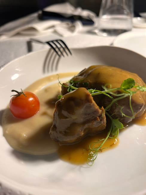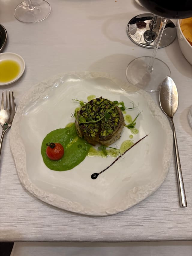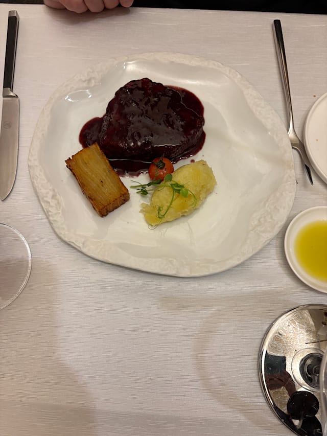 9.5/10What a stunning location in the plaza! The food was delicious! The steak so tender and sauce perfect! Most amazing was the dessert, so creative and all unique tastes. Mt Etna panacotta, with orange gel lava, chocolate cookie crumble lava, peach gelato!! So fun, so yummy!