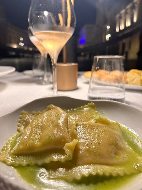 10/10+1Absolutely gorgeous setting with amazing food. We loved it so much that we went twice in 5 days. The ravioli with shellfish ragu was out of this world! Fabulous restaurant with delicious food, perfectly chilled wine and wonderful service. Highly recommend!