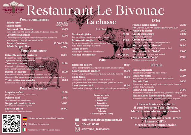Relais Alpin - Le Bivouac is identified as offering swiss cuisine.