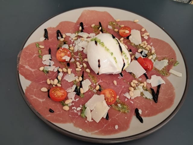 - Jambon cru, rosette, coppa, jambon blanc torchon, servis avec cornichons et pain tomme de chartreuse, délice de chartreuse, grand duc, l'estival, reblochon