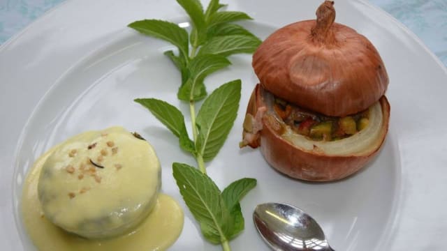 Cipolla bionda ripiena di verdure gratinata a 180°C