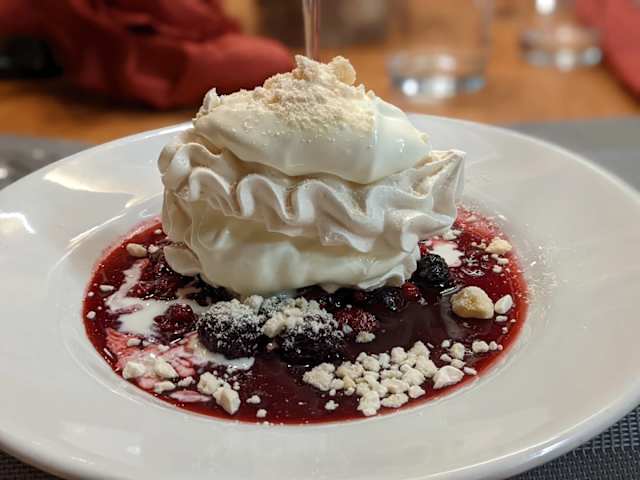 - Meringues légères, crème double onctueuse de gruyère et fruits rouges juteux – le dessert valaisan qui fond le cœur et ravit les papilles!