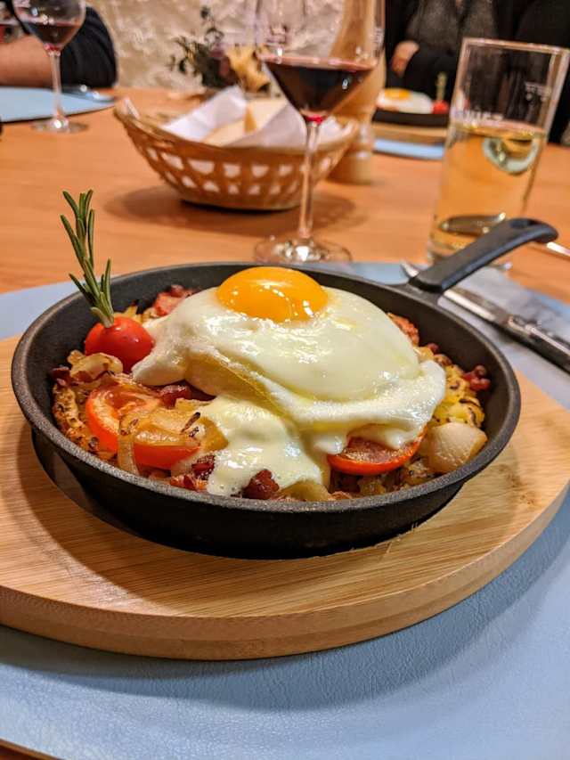 - Le rösti qui donne envie de grimper : fromage à raclette et œuf – quand le valais fait son brunch tout seul.