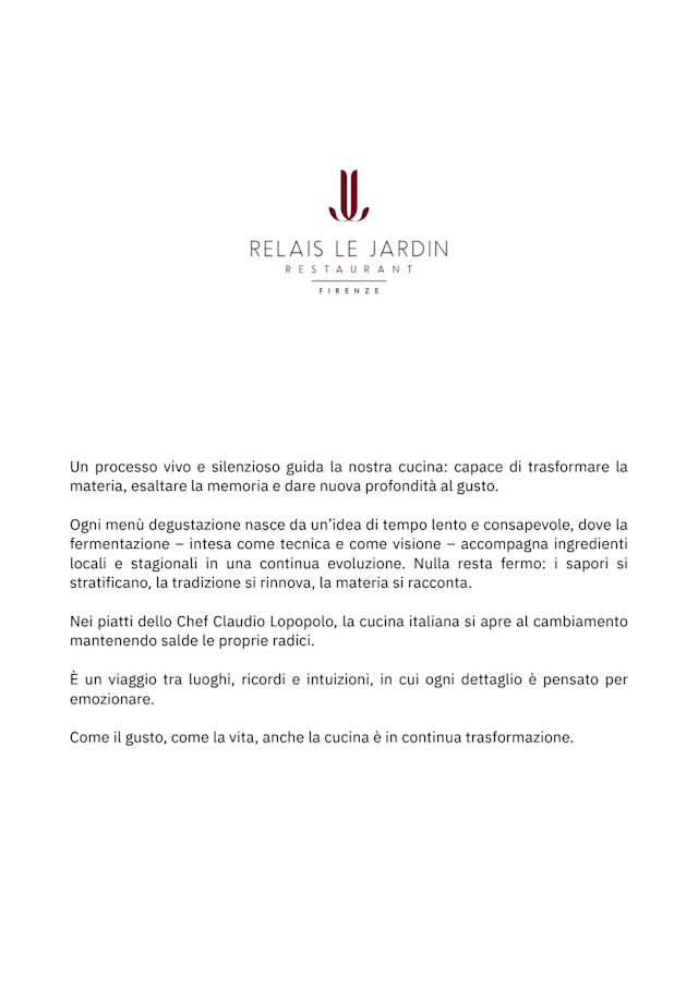 Dear Jean-Michel, Greetings from Florence! We would like to thank you for sharing your experience in our restaurant "Relais Le Jardin". We appreciate your positive feedback on service and the charming location. Please not hesitate to book again with us. We cannot wait to see you again! Best Regards Claudia Gallo - General Manager
