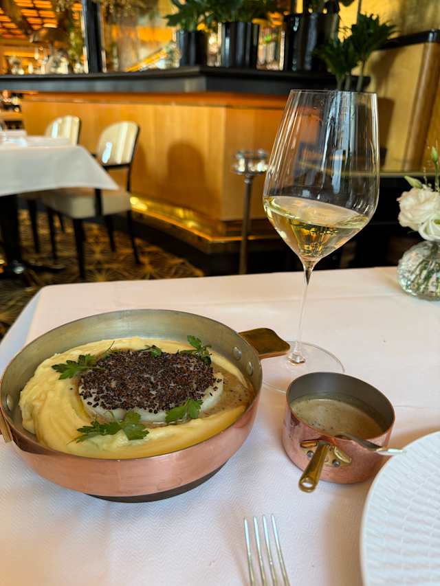 - Sautéed veal sweetbreads, mashed potatoes with comté & chanterelle mushroom sauce