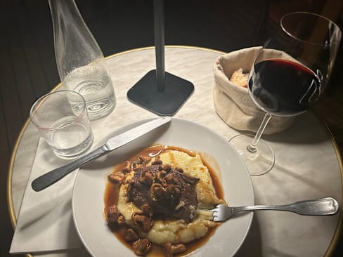 6.5/10Ambiance was very nice and the service was good. The food however, was very disappointing. The Beef bourguignon was lacking taste and depth and was also quite fatty. My husband’s steak frites were fine, but nothing special. We wouldn’t go back.