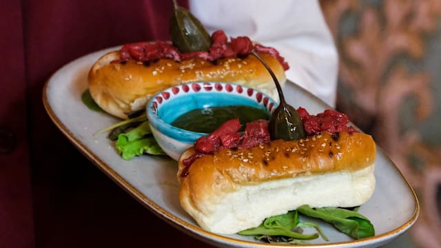 Mini panino con tartare di manzo ed emulsione di friarielli