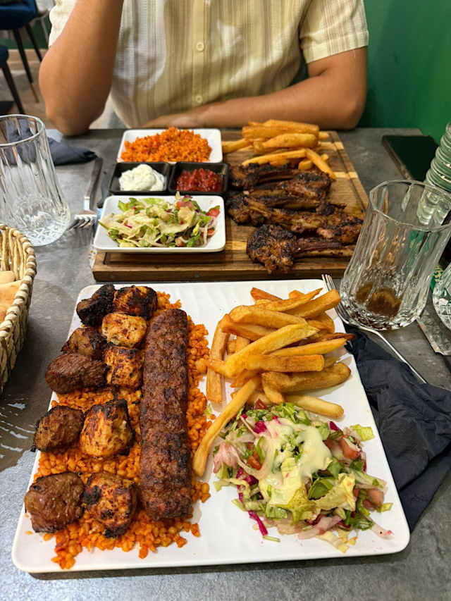 - Kusbasi ou adana ou tavuk sis (avec frites/boulgour et salade)