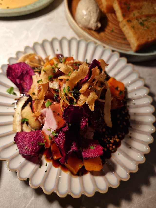 10/10+2We had a bit of a hard time finding it as there is no sign, but once inside the atmosphere is indeed arty, fun and relaxed. The personnel was very nice and the food excellent. An unexpected combination of ingredients, a discovery and surprise in each plate. We have spent a truly good moment among friends.